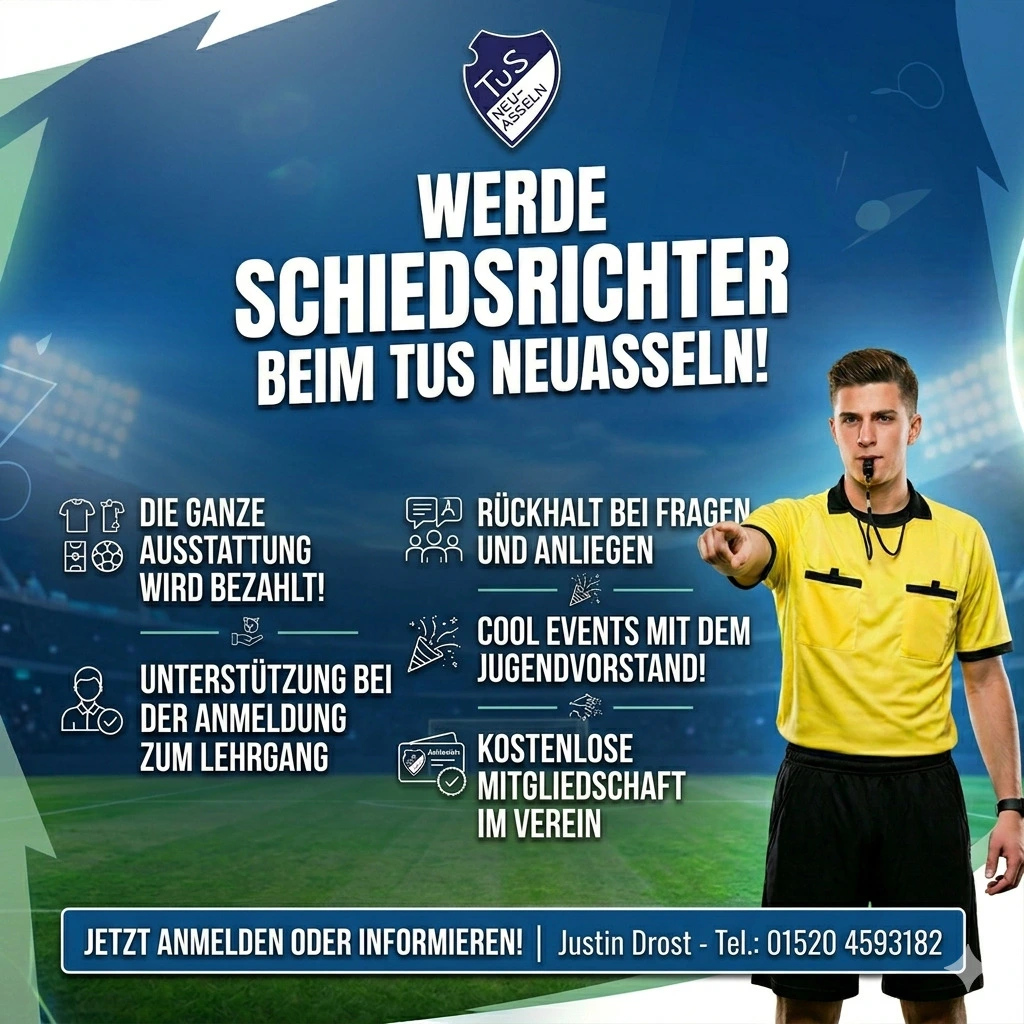 Du interessierst dich für Fußball und möchtest Verantwortung auf dem Spielfeld übernehmen? Dann werde Schiedsrichter beim TuS Neuasseln.